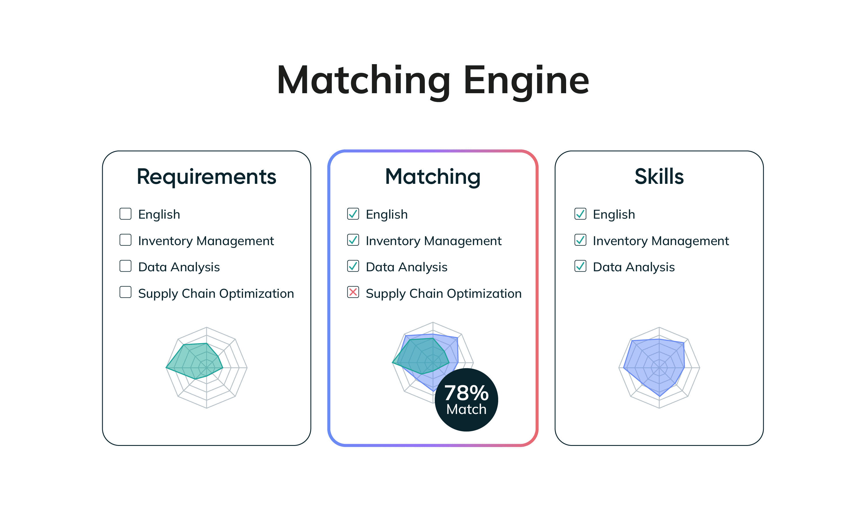 KIRA evaluates job requirements, skills, personality traits, motivators, and company culture for ideal matches. Say goodbye to unnecessary interviews - focus on high-potential hires only.